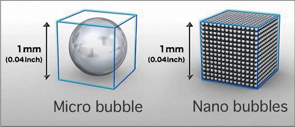 Nanobubbles are significantly smaller than microbubbles. They do not float to the surface and remain suspended in water.