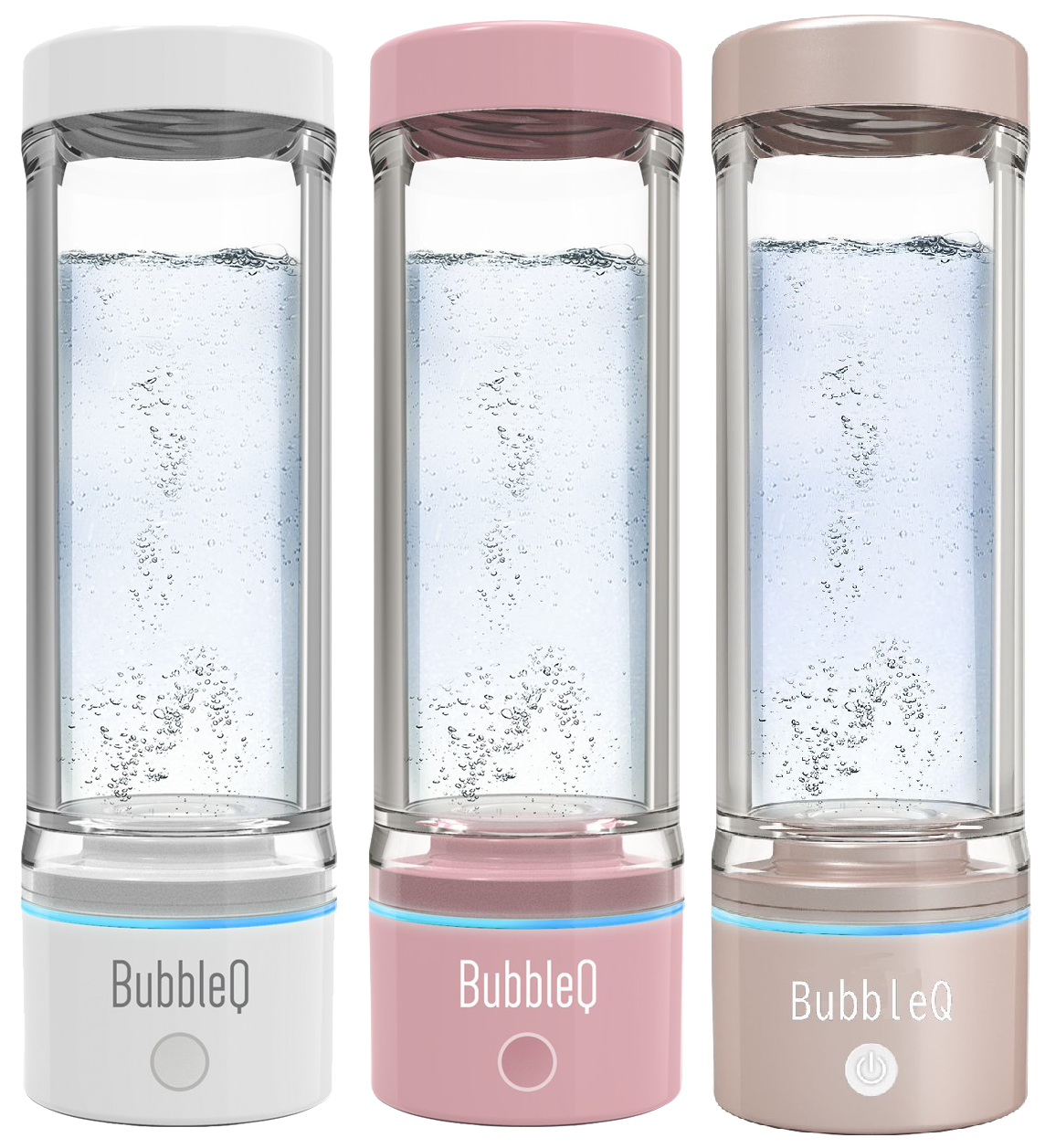 The BQ-30 delivers approximately 2.5 ppm hydrogen concentration in 20-minute mode and 1.5 ppm in 5-minute mode (1 ppm = 1,000 ppb), producing hydrogen at 7 ml/min. Conventional air bubbles are too large and escape quickly; BQ-30 creates nanobubbles—microscopic hydrogen bubbles—that remain suspended in the water due to Brownian motion, enabling truly high-concentration hydrogen water.