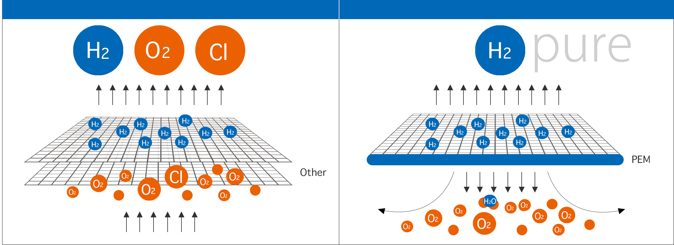 The built-in PEM electrolyzer generates high-purity molecular hydrogen from purified water, producing 99.99% pure hydrogen continuously and stably.