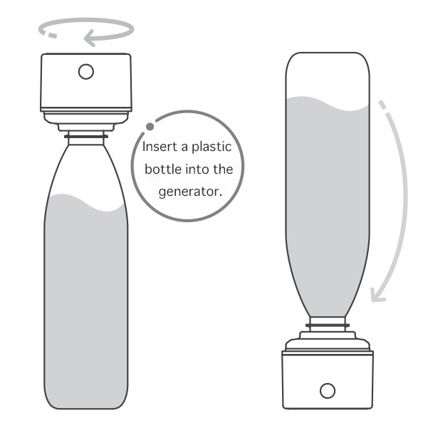 To generate hydrogen water, simply attach a PET bottle, lay the unit flat, and press the switch. With a full charge, you can use the 5-minute mode approximately 14 times, and the 20-minute mode about 3 times.